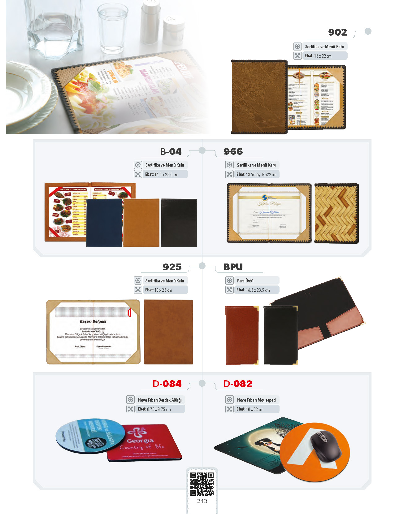 Sertifika ve Menü Kabı promosyon ürünleri içerisinde geniş bir kitlenin ilgisini çekmek ve hedef kitleyi şirketinizin faaliyetleri ile ilgili etkinlikler hakkında bilgilendirmek amacıyla kullanılmaktadır. Promosyon ürünleri bir marka, şirket veya belirli bir satıcı tarafından oluşturulan nesne, görsel ve işitsel malzemelerdir. Markanıza özel üretilen Promosyon ürünlerimiz müşterileriniz için harika bir hediyedir.